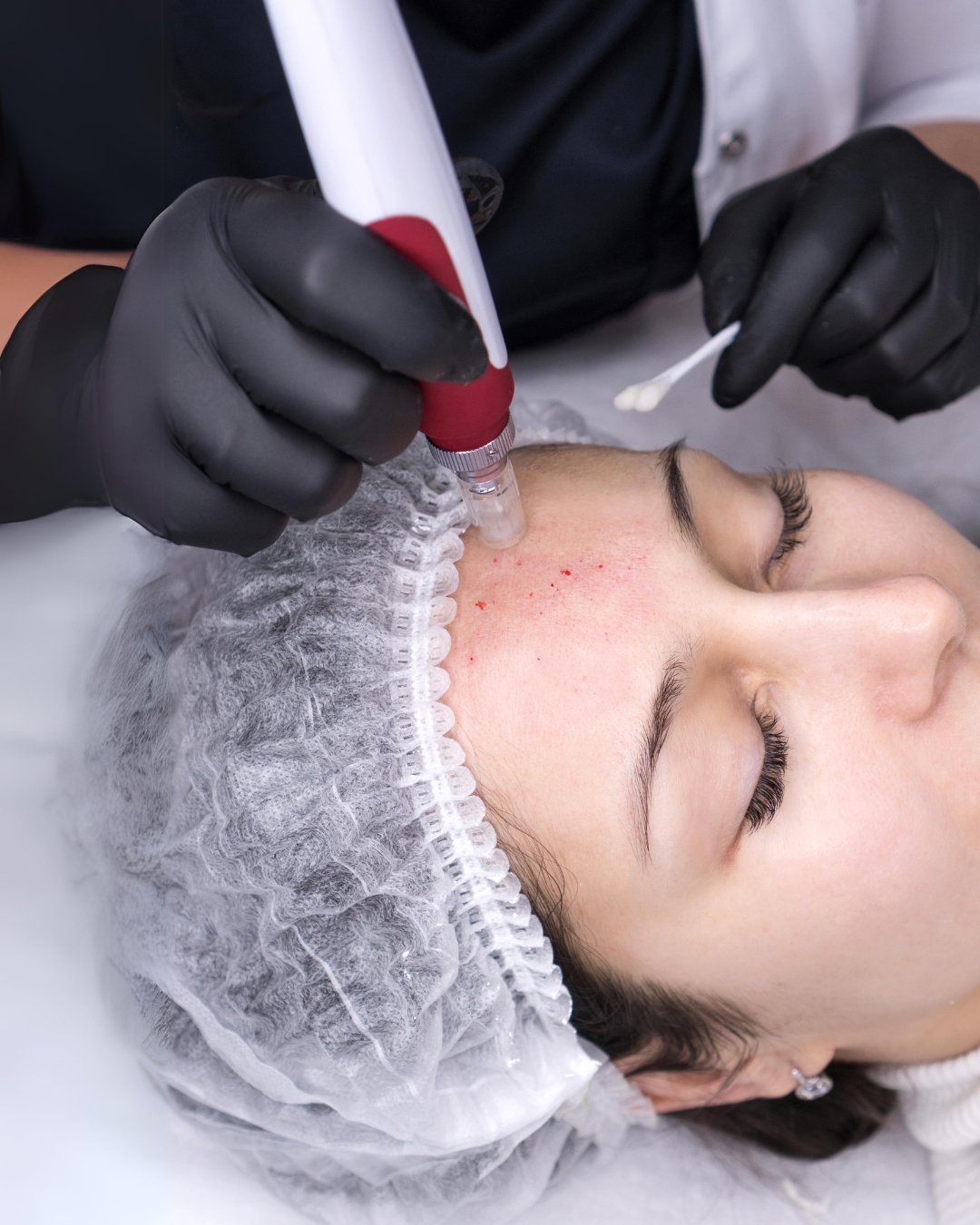 Um procedimento estético que por meio de várias microagulhas aumenta a vaso-ditação e estimula ...
